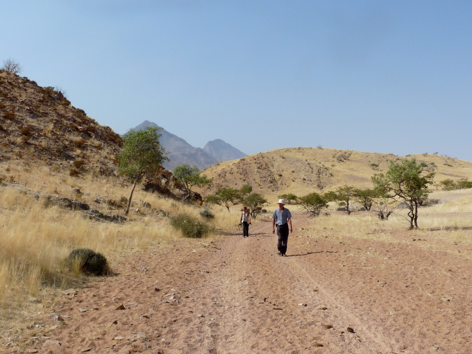Fahrt über Sesfontein über die Giribes Ebene, vorbei am markanten „Signal Hill“ hinab in den Hoanib Trockenfluß. Die Karten von T4A geben vor der Einfahrt in den Hoanib bereits einige gute Übernachtungspunkte an. Da das wildcampen im Hoanib River verboten wurde, muss man zum wildcampen etwas ausweichen, d.h. mehr vom Flussbett weggehen. Hier gibt es aber auch einige Tipps. Oder man geht alternativ in die Elephant Song Campsite